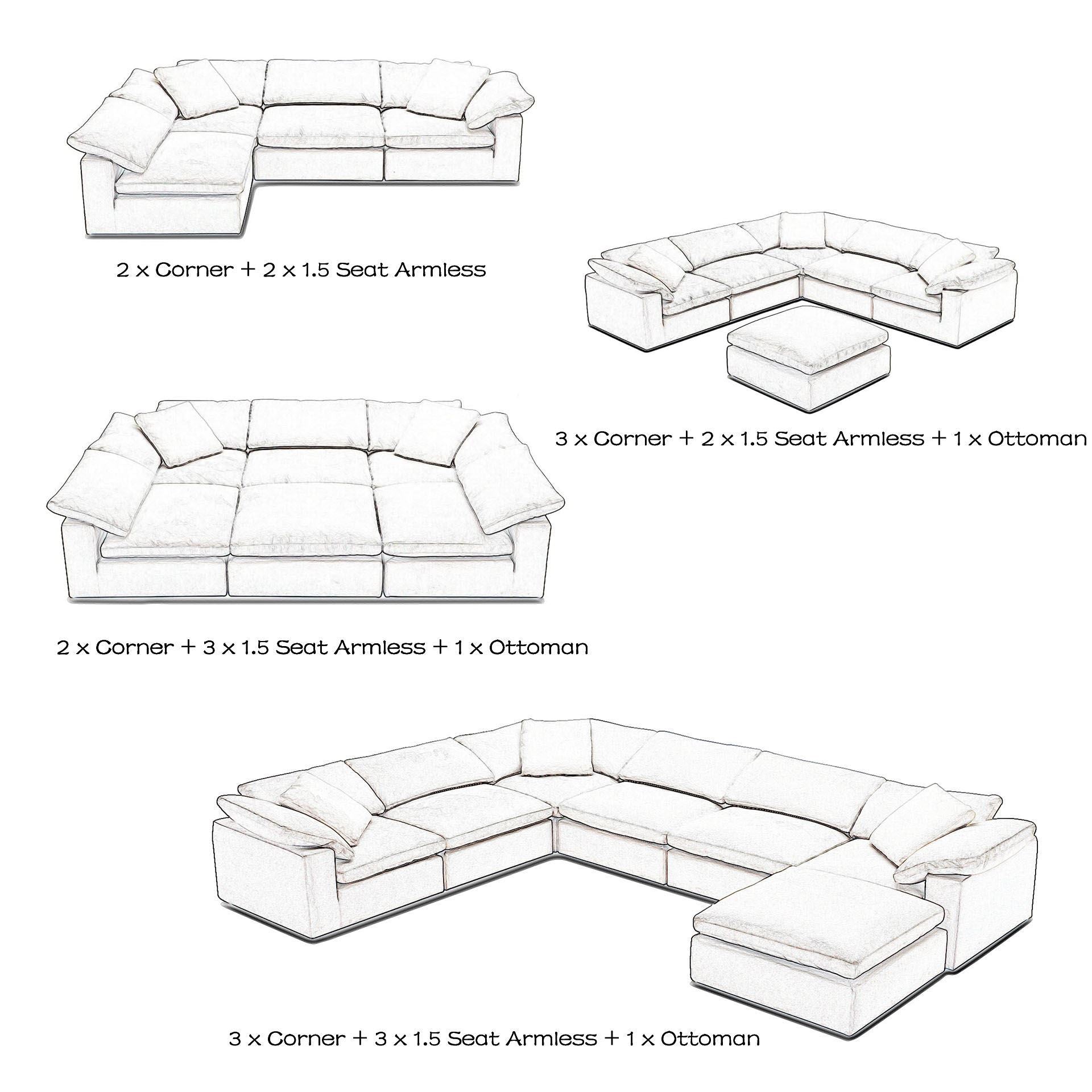 1.5 Seat armless: L110 W110 H51(Seat)/60(Arm)/80(with cushion)